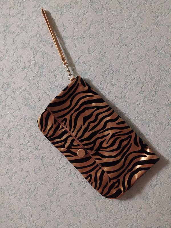Яркий, красивый клатч Внутри одно большое отделение и маленький на змеечке.