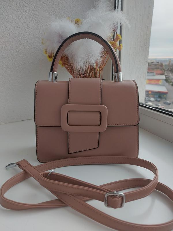 Сумочка невеликого розміру, на 2 відділення,довга пряжка в комплекті. Є невеликий слід всередині маленька тріщинка(