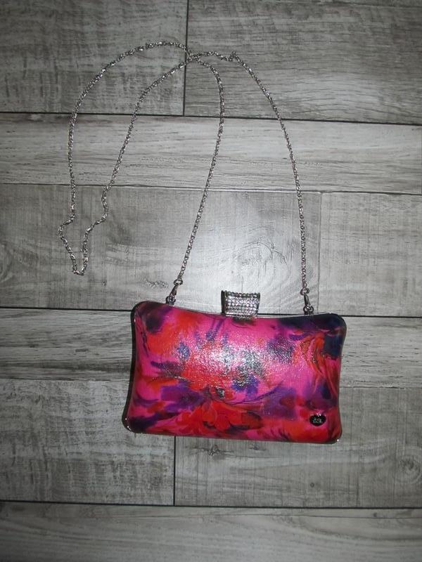 Яркий клатч Suzy Smith Англия. Оригинал., материал верха PU кожа, внутри подкладка из атласа, в комплекте длинная цепочка, защелка декорирована стразами. Размер:21 x 6 x 14 см. Новый. цена 320 грн