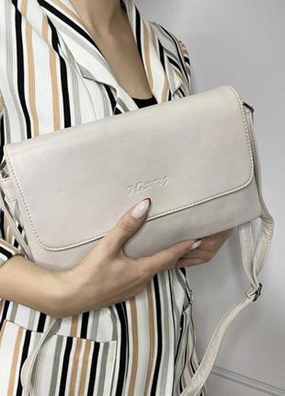 Жіноча сумка через плече. Арт 547 В наявності два кольори Сумка-клатч Виготовлена з еко шкіри Три відділення на блискавці Додаткові кишені для дрібниць З тильного боку прорізної кишені на блискавці Підклад Клапан застібається на магнітні кнопки Плечовий ремінь незнімний, регульований 135 см 17*28 Ціна 399грн