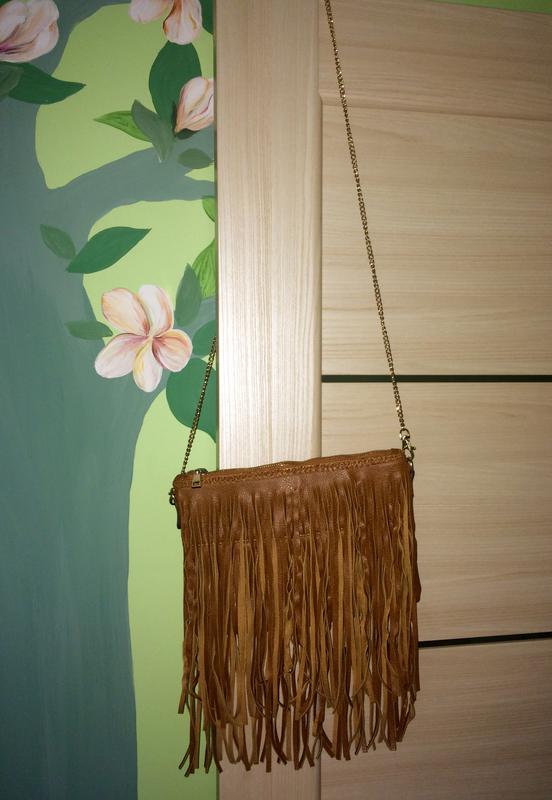 Сумка с бохрамой в новом состоянии. Материал- заменитель кожи. Металическая фурнитура, имеются внутренние карманы. Размер 27*19 Длинна цепочки 115 см.