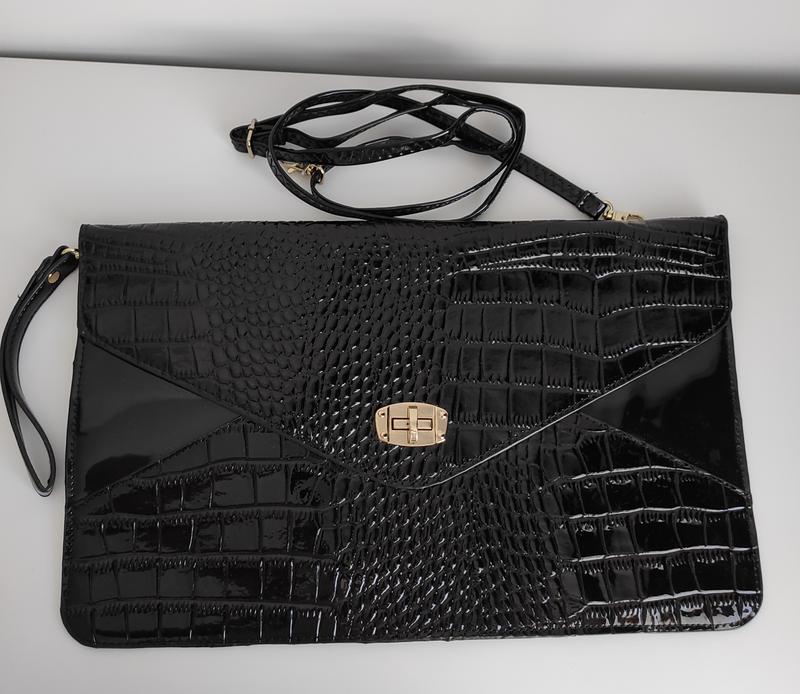 Жіноча сумка - клатч (конверт) чорного кольору. Розміри 42*26. Одне відділення на замочок. Є два ремінці довгий і короткий.