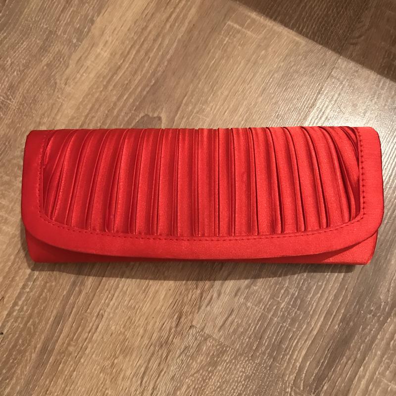 Витончений клатч, красивого червоного кольору. Є довга ланцюжок для носіння через плече.