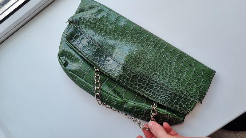 Сумка-клатч зеленый лаковый. Искусственная лаковая кожа под змею. Есть ремешок цепи. Закрывается и складывается в клатч.