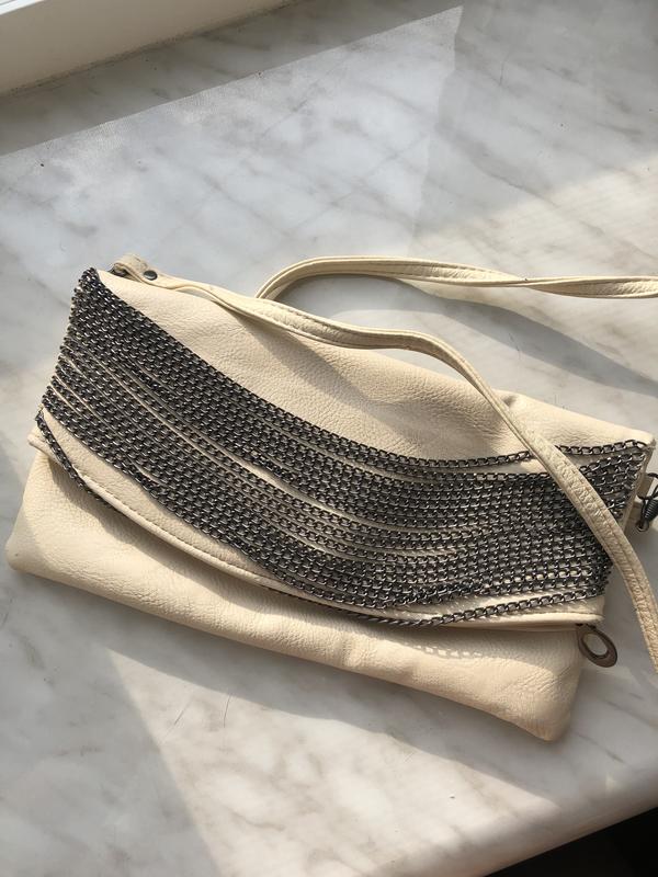 Бежевый клатч с цепью