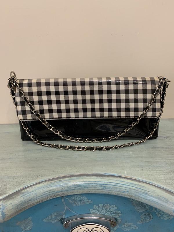 классическая комбинированнаая коктейльная сумочка,высота 15 см, длина 34 см, дно 7 см, застежка молния и две кнопки, внутри карман на застежке молнии ,ручка 73