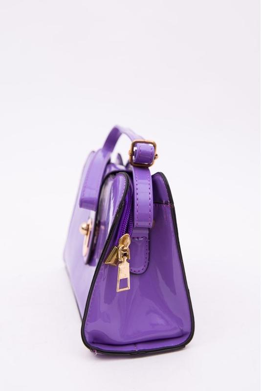 Лакова сумочка міні-клатч на короткому ремінці. Всередині два відділення . Застібається на блискавку і замочок. 🌱виміри: 18 х 15 х 6 см 🌱матеріал: екошкіра 🌱колір: чорний, фіолетовий