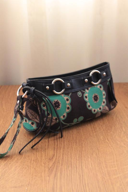 Косметичка выполнена из плотного текстиля с цветочным принтом .На лицевой стороне шильда с брендом. Ширина 24 см. Высота 14 см.