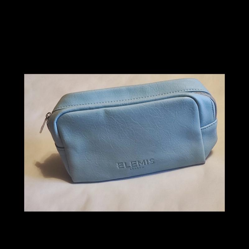 Классическая косметичка бренда Еlemis cyan cosmetic bag нежно-голубого цвета из полиуретана с имитацией рисунка кожи на подкладке цвета морской волны. Застежка молния серебристого цвета. Оригинал. Размеры - 19 Х11 Х 8 см. Материалы; Верх - 100% полиуретан, подкладка - 100% полиэстер.
