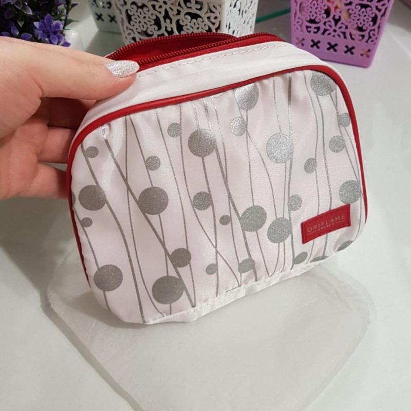 Косметичка Silver Cosmetic Bag Легкий, «воздушный» дизайн с серебристым принтом и изысканной красной отделкой. Удобно и модно. Застежка-молния. Размер: 17 х 7 х 12,5 см.