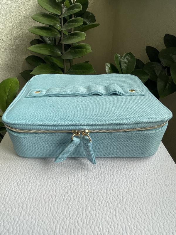 Косметика з текстилю, має одне відділення на завʼязках. Має розмір 14*19*5.