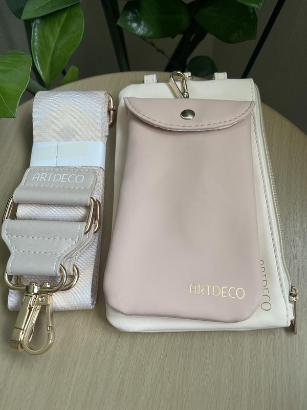 Сумка - чехол для телефону на ремінці. Виріб виконаний зі штучного матеріалу. Сумочка на блискавці має розмір 18*11, чехол на застібці 15*9