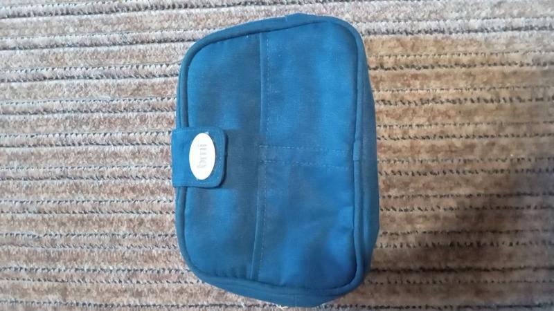 Приятная вещица. Удобная. Внутри карман из сеточки прочной на змейке. Застегивается легко - на змейку и на магнитную кнопку. Высота 14, ширина 20, глубина 5 см. Яркий синий цвет.