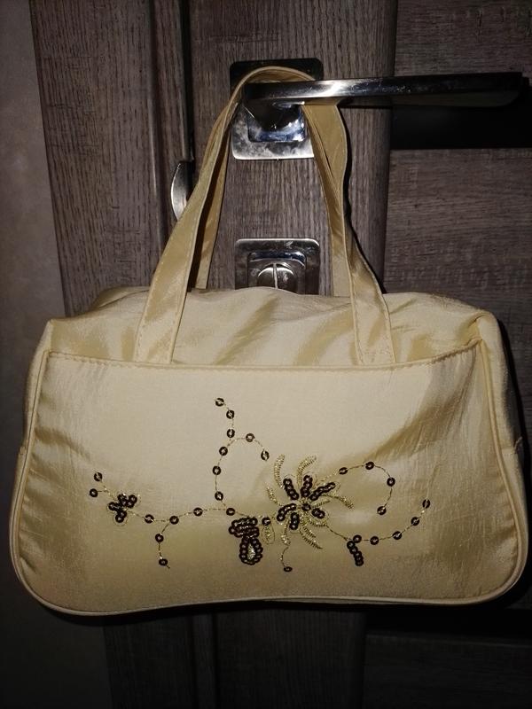 Фирменная косметичка, удобная, вместительная, из плотной ткани, спереди пайетками выложен красивый узор! Почти не пользователя, приобретённая заграном,