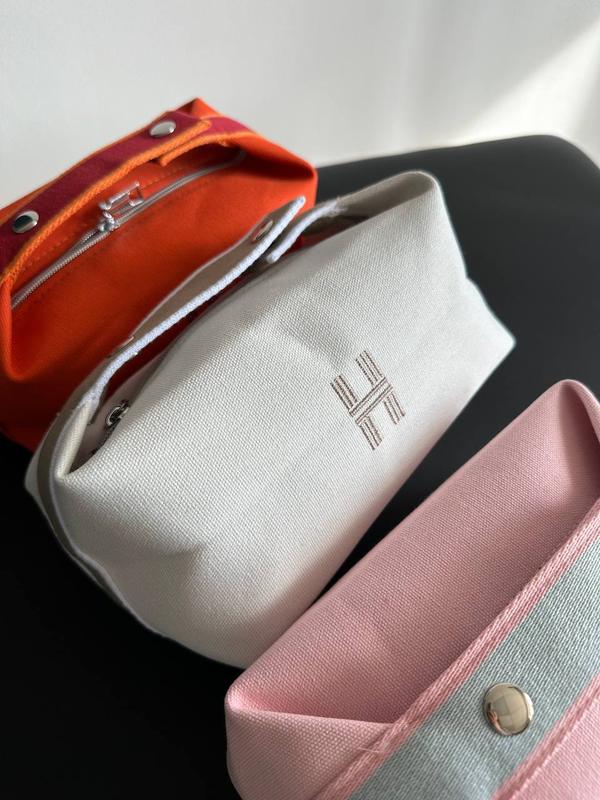 Косметична сумка HERMES. Яскрава тканина 🧡🤍🩷 Внутри одно большое отделение и четыре маленьких. Размер: 22*12*9см.