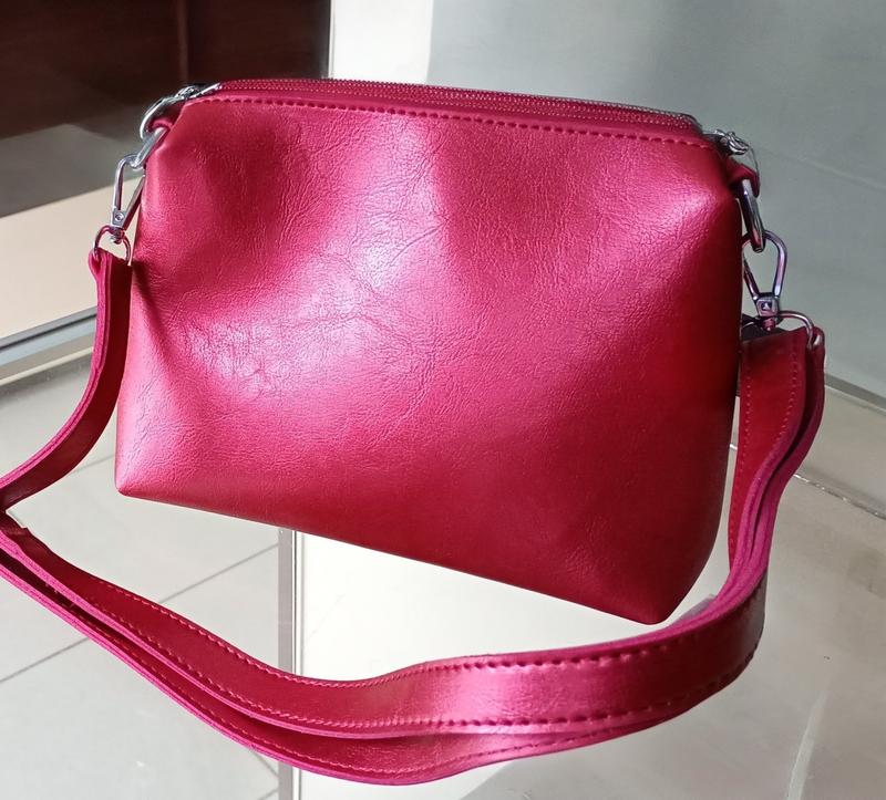 Кожаная косметичка или маленькая сумочка. Цвет красивый яркий красный перламутровый. Размер 22*18*8 см. Имеет длинный кожаный ремешок с регулировкой длины. Сумочка имеет одно отделение без подкладки. Держит форму, закрывается на молнию. Можно использовать вместо кошелька или мальенькой сумочки, куда помещается телефон и ключи. Длинный ремешок позволяет носить ее через плечо-накрест для освобождения рук. Пересылаю после оплаты на карточку или безопасной оплатой.