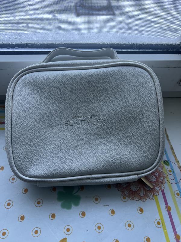 Ця сіра косметичка Lookfantastic Beauty Box — це аксесуар зі штучної шкіри, який часто входить до складу щомісячних або лімітованих наборів краси від Lookfantastic. Такі сумочки призначені для зберігання косметики та зазвичай містять мінімум шість продуктів для догляду за шкірою, волоссям або макіяжу. Розміри 21 x 17 x 4 cm