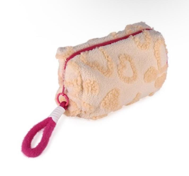 Пухнаста косметичка в сердечка з м’якого приємного матеріалу. Має зручну блискавку та містке відділення для косметики й дрібниць. Акуратна, легка та комфортна у щоденному використанні.