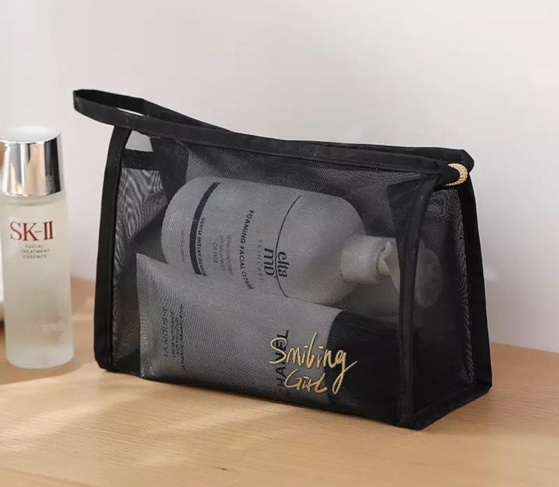 Удобная прозрачная косметичка на молнии из нейлоновой сетки, пропускает воздух. Размер 21,5х14,5х8,5