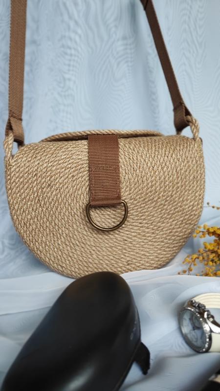 сумка через плечо из джута техника зигзаг размер d25см ширина 8см ремень 125 см купи себе и ходи красивой этим летом