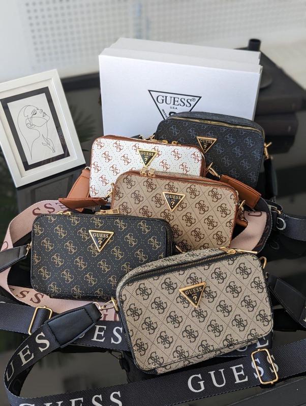 Сумочка Guess кросс-боди мини лого код черный 20297-1 коричневый 20297-2 бежевий+риж. 20297-5 белый+рыж. 20297-6 серый 20297-7 -Материал: эко-кожа - Два независимых отделения, по середине карман на белье. С обратной стороны мини карман открыт. - Размер: 21x13x7см - Ремешок 145см максимальный.