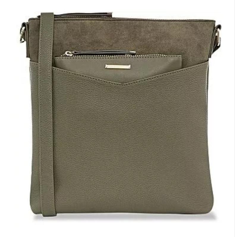 Сток, состояние идеальное. Цвет, как на последнем фото. Комбинация из искусственной замши и искусственной кожи. Сумка в комплекте с кошельком. Размер сумки 28*29*3 см, кошелёк 18*13 см.
