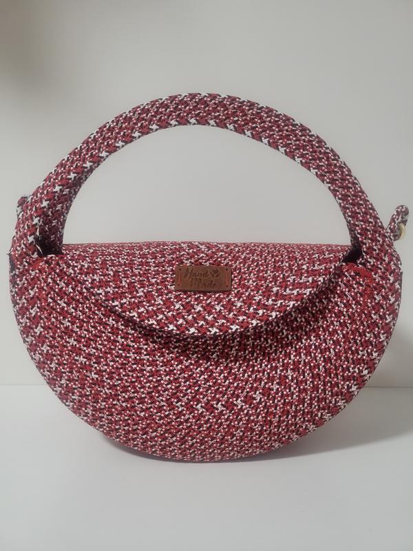 Сумка кросс боди в цветах вышиванки, ручная работа, 100% хлопковый шнур, кожаные бирки, текстильный регулируемый ремень Размеры: d 27 см ширина 8 см В середине имеет два кармана: один полумесяцем, второй хлопковый на молнии Имеет петельку которая прячется в сумку с изменением карабином для ключей Под заказ!