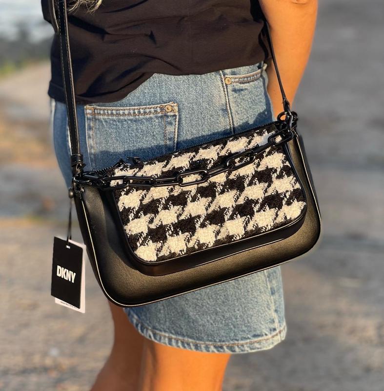 Сумка DKNY (оригинал) трансформер. Можно носить в нескольких вариантах Материал -искусственная кожа и текстиль Замеры: 1) 15/25/5 см 2) 11/18,5/4 см Плечевый ремень регулируется Обмен не интересен ТОРГУ НЕ МАЄ При покупке доставка за наш счет
