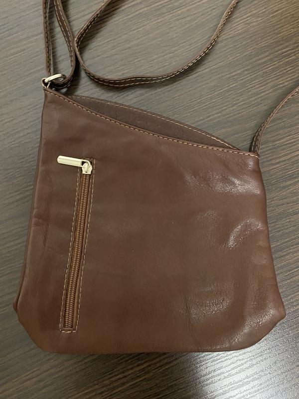 Кожаная сумка с регулируемым ремнем. Изготовлена в Италии. Внутри кармашек на молнии. Размер: 23*21, длина ремня -130.