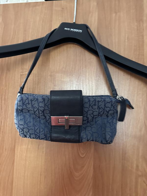 Очень классная и крутая ткань маленькая сумочка со вставками кожи. Состояние на фото, возможен торг. Цвет синий, вся в надписях бренда.