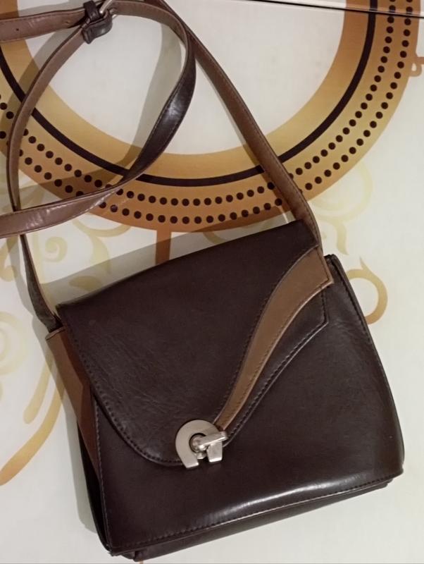 Фірмова вмістка сумка кросбоді на довгому ремінці , з якісної екошкіри , в середині два відділення та дві кишені , які застібаються на блискавку , ремінець регулюється . Розмір 23*19*6 , довжина ремінця 142 . Без дефектів та пошкоджень .