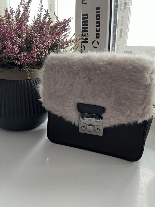 Сумочка серого цвета с искусственным мехом, в красивом состоянии. Ручка регулируется