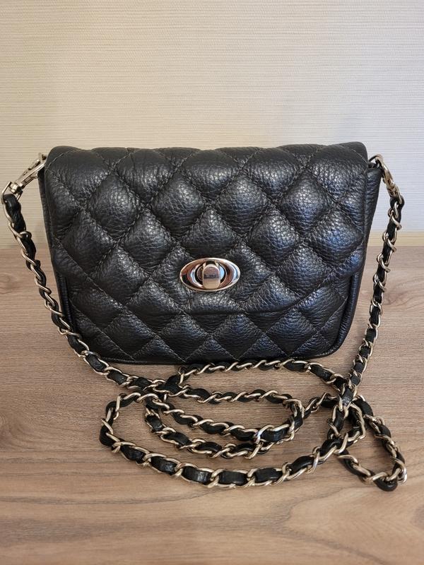 Красивая маленькая сумочка, в которую помещается все необходимое. Ее можно носить на цепочке или на поясе. Цвет - графитовый. Фурнитура серебряная. Розмір 20×13×5