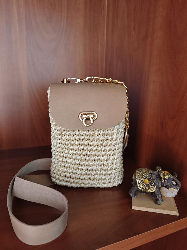 Сумочка-малишка в якій поміститься: телефон, гаманець, ключі, паспорт. Яскравих літніх кольорів. З шкіряною фурнітурою. Ручна робота