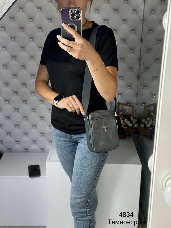 Женская мужская сумка сумочка кросс-боди темно серая графит кожаная с эко кожи на два отде...