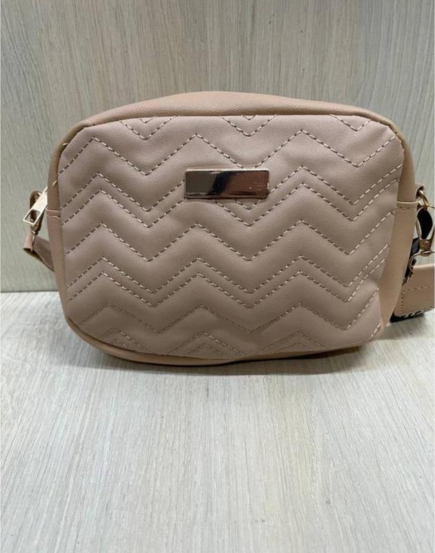 Бежевая небольшая сумочка с широким наплечным ремешком. Размер 18*6*13см