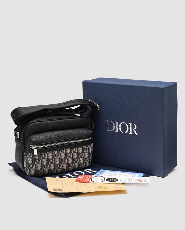 🏷 Dior Rider 2.0 Zipped Messenger Bag Beige and Black (Арт: 77255) ⏺ Розмір: 23 x 17 x 9 см ⏺ Матеріал: Шкіра Сумка виготовлена з текстурної шкіри та текстилю з фірмовою канвою. Всередині одне основне відділення, також додаткова кишеня. Підкладка з щільного та якісного текстилю, є гравіювання. Зачиняється відділення на застібці. Фурнітура металева, під срібло. Ремінець виконаний з текстилю, регулюється за довжиною. Комплектується у брендовій коробці кришка - дно та пильовику, є буклети.