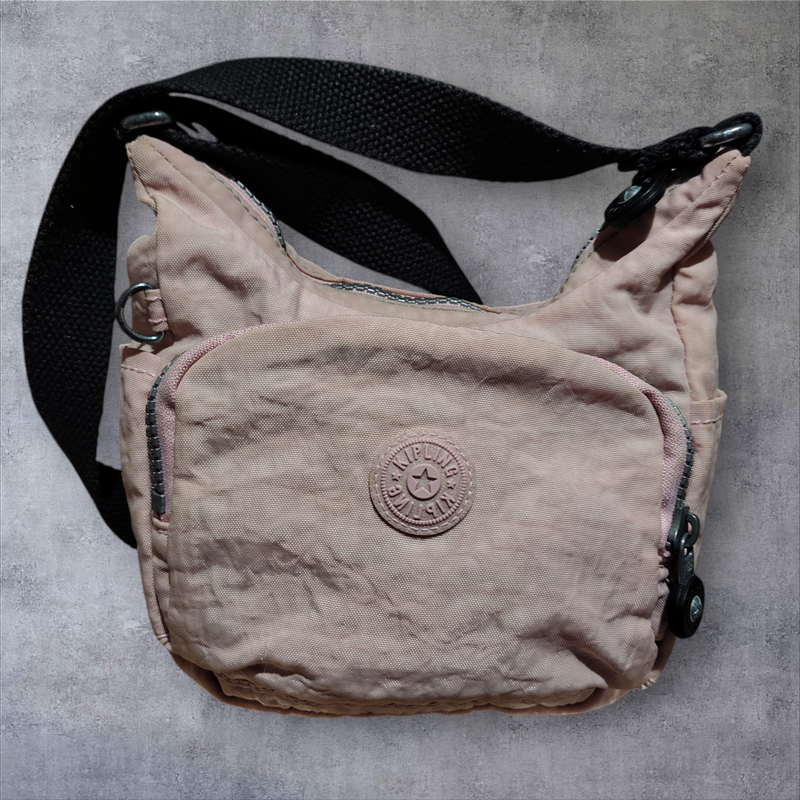маленькая сумочка от Kipring бледно-розового цвета, фото цвет не передает и она не полосатая как на фото, впереди карман на молнии, сзади карман на липучке, серединка закрывается молнией, по бокам есть открытые кармашки, внутри карманов нет. длинный ремешок который регулируется. замеры 15*16*7. вещи сток секонд-хенд возврата и обмена нет. оплата на карту или безопасной доставкой шкафа.