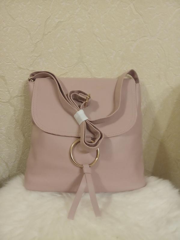 Стильная сумка, качественная экокожа, цвет - пудра, вместительная, размер 24*31 ширина дна 10 см, внутри одно отделение на молнии и 2 отделения для мобильного телефона.