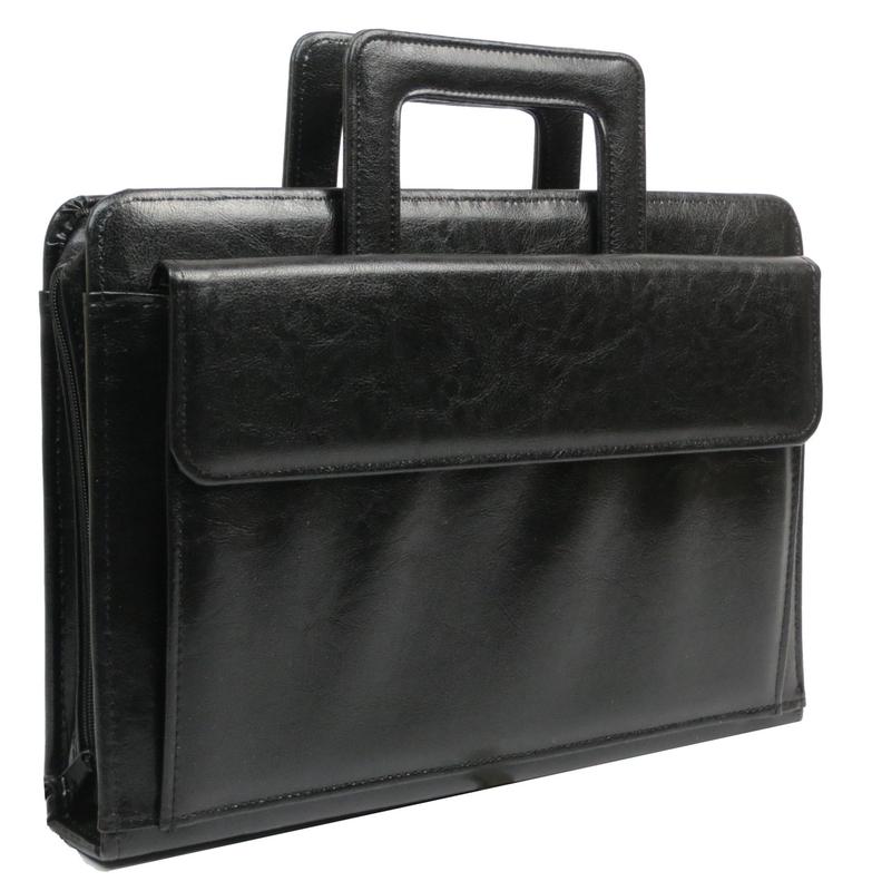 Папка-портфель Jpb из эко кожи черная AK-15 Описание товара: - Папка изготовлена из качественного кожзаменителя. - Закрывается на молнию. - Внутри одного отделения расположены два кармашка для визиток и две петли для ручек и один маленький открытый карман. - Внутренние перегородки из плотной ткани. - Удобные ручка, которые при необходимости прячутся в специально предусмотренные кармашки. - На передней стенке папки присутствует карман на магнитной застежке. Характеристики: - Материал: искусственная кожа. - Цвет: черный. - Внешние размеры портфеля (ШхВхГ): 38 х 27 х 6-10 см. - Помещаются документы формата А4. - Производитель: JPB (Польша).