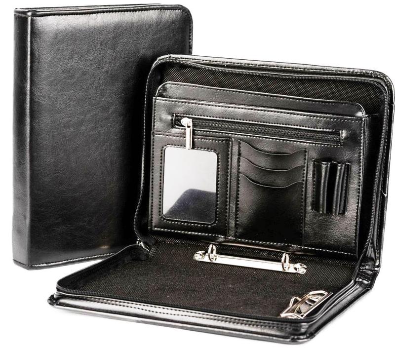 Папка из искусственной кожи Amo, Польша Ssbw08 black Описание товара: - Два открытых отделения. - Один карман на молнии. - Три петли для ручек. - Три кармана для визиток. - Сегрегатор, крепление для блокнота формата А5, Характеристики: - Размеры: 27х20х4 см. - Цвет: черный. - Материал: искусственная кожа. - Производитель: AMO, Польша. - Формат документов А4 не помещается!