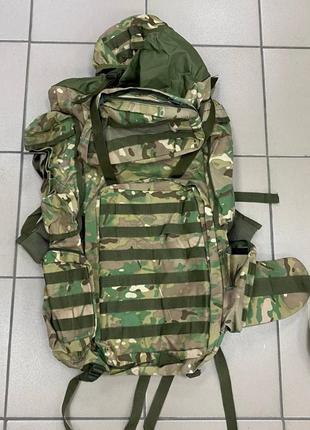 Рюкзак 110л мультикам - система молли - основной отсек на 100л, два поменьше - каркас для фиксации формы - шнурок в основном отсеке и «шапочка» против дождя - супинатор на спине - 2 больших боковых кармана, 2 маленьких - фиксирующий ремень на пояс