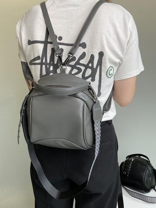 Жіночий міні рюкзак Один відділ з підкладом та кишенями всередині. З тильної сторони кишеня на блискавці. В комплекті зйомні тонкі плечові ремені та широкий текстильний через плече. Арт. 110159 Вартість: 699 грн Розмір: 20*20*10 Матеріал: штучна шкіра Колір: чорний, сірий, коричневий
