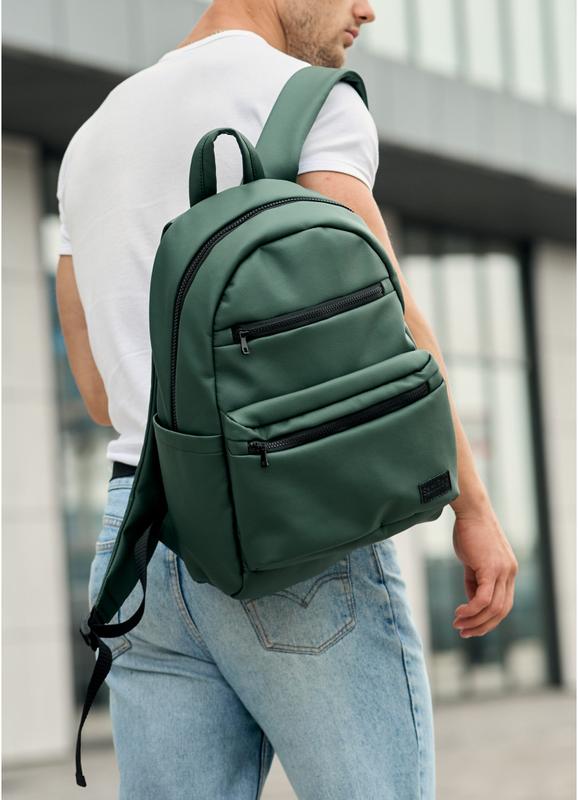 ✔️Матеріал верха: новітня екошкіра підвищеного рівня зносостійкості. Шкіра водовідштовхуюча, стійка до вицвітання, еластична та міцна на розрив. Спинка тримає форму: ущільнена піноматеріалом . ✔️Підкладка. Матеріал середньої щільності, міцний, стійкий до царапин, легко чиститься, нитки з нього не вилазять. ✔️Фурнітура. Бігунки металеві з фіксатором. Основне відділення на блискавці. ✔️Шлейки. Плечеві ремені шкіряні, надійно пришиті на планку по спинці. Приєднані до боків шкіряними трикутниками. ✔️Функціоналість. Ззовні спереду рюкзака два кармани: один великий карман та менший над ним, обидва на блискавці. Всередині основного відділення рюкзака є п'ять карманів: окреме відділення під ноутбук до 14дюймів. Відділення надійно захищено піноматеріалом по всій висоті. Також захищені піноматеріалом два невеликих відкритих кармани. З іншого боку середини карман на блискавці та один відкритий карман. Ззовні на спинці рюкзака є дві додаткові кишені на блискавці, одна з яких під формат А4. З боків два відкритих кармани для різних дрібниць. Артикул: 25058007 Розмір (см): 46/28/13 см
