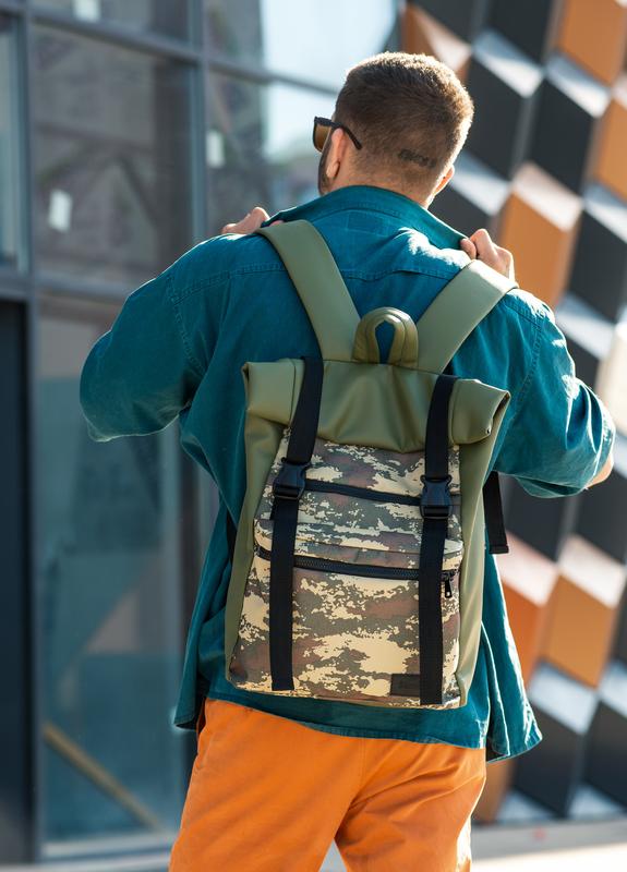 Чоловічий рюкзак ролл sambag rolltop zard хакі з піксельним камуфляжем