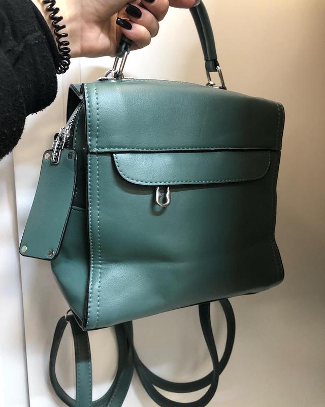 Невеличкий вмісткий рюкзак з якісної еко-шкіри❤️ Можна носити і як сумку, як і рюкзак В зеленому кольорі💚 Ціна 850 грн за детальними фото та інформацією в дірект❤️