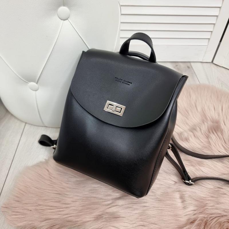 🔥 Дуже гарна, невелика СУМКА-РЮКЗАК 🔥 ФУРНІТУРА: срібло РОЗМІРИ: Ширина по низу - 21 см, висота - 26 см, дно - 12,5 см + ручка + ремінець МАТЕРІАЛ: ЕКО шкіра., підкладка - щільна тканина СКЛАД: Три відділи, середній відділ закривається на блискавку. Сумка-рюкзак зверху закривається клапаном на замок. Всередині є відкрита кишеня і кишеня на блискавці.
