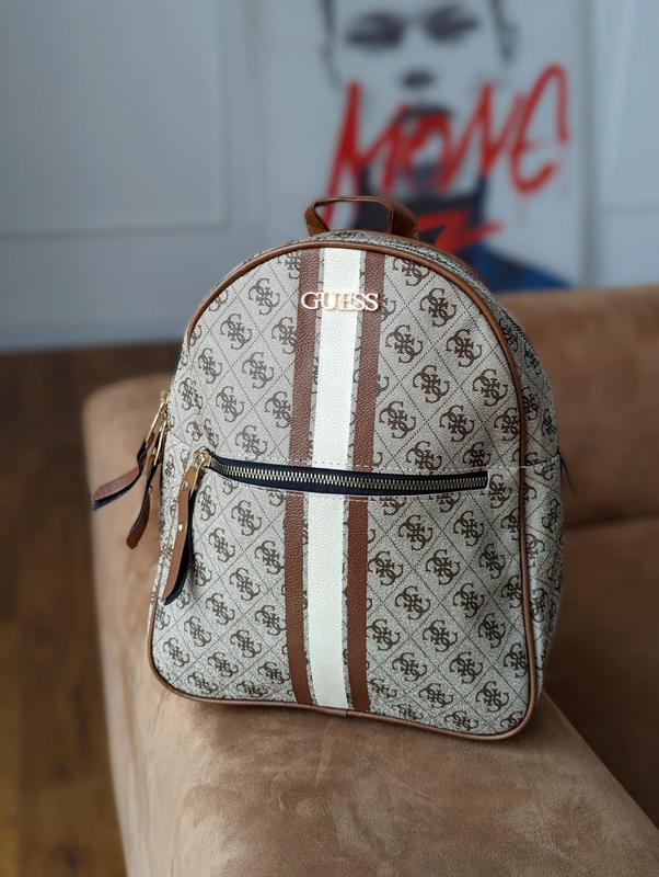 Рюкзак Guess с линейной вставкой 😮 код черный 20299-1 бежевый 20299-2 белый 20299-3 -Материал: эко-кожа - Одно большое отделение, подкладка черная есть. На лицевой стороне карман на молнии. - Размер: 26x31x11см