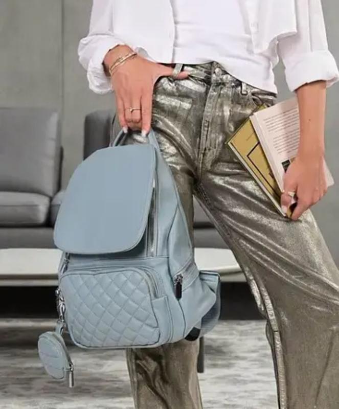 🌸Рюкзак изготовлен из искусственной кожи, застегивается на молнию и кнопку Внутри рюкзака один отдел, 2 кармана, один из которых на молнии На фасаде и сзади рюкзака карман на молнии и 2 боковых кармана. В комплекте ключница размером 9*9 см Размер рюкзака 28*35*12 см фото 4,5 -В комплекте ремень длиной 80 см и кошелек размером 14*10 см Размер рюкзака 29*34*12 см нольделяттричетырешим-симтришнулёсимвайбер