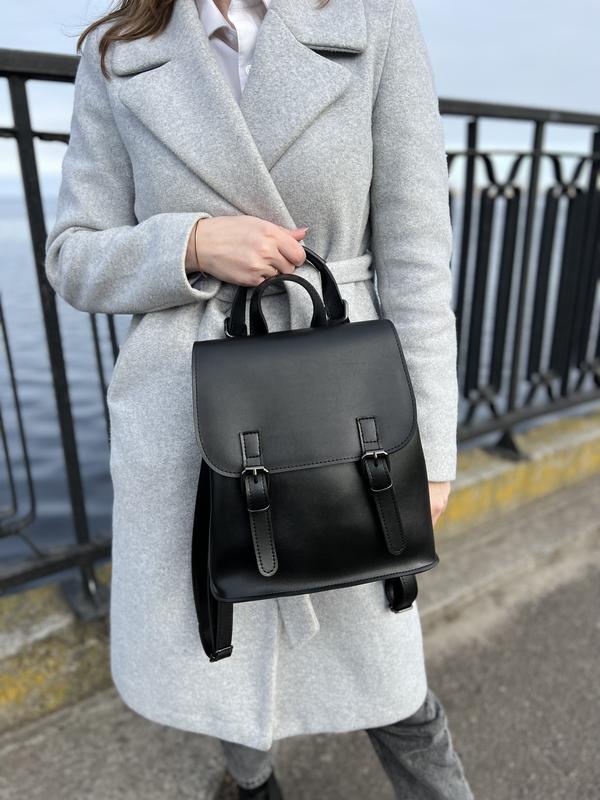 Сумка-рюкзак где ручки регулируются и если вы хотите носить как сумку. Есть подкладка Украинское производство Качественная гладкая экокожа Размер 26 x 28 x 12см Вместительный, еще есть кармашки внутри один из них на молнии.
